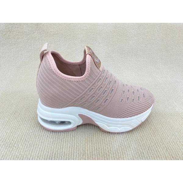 Women pink platform flyknit loafers with breathable mesh upper microfiber and heightening